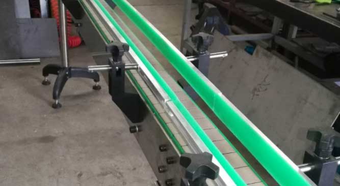 波狀擋邊輸送帶是在通用的輸送帶(織物芯帶或鋼繩芯帶)兩側粘上不同高度的可彎曲、可伸縮的s形或w形橡膠波狀擋邊,同時在兩條擋邊之間的基帶上依一定間距粘上橫隔板,以便裝運物料。