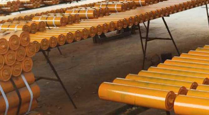 輸送帶,使輸送帶的懸垂度不超過技術上的要求,以保證輸送帶平穩地運行。托輥安裝在機架上,而輸送帶鋪設在托輥上,為減小輸送帶運行阻力,在托輥內裝有滾動軸承。機架主要由機頭傳動架、中部架、中問驅動架、受料架和機尾架等組合而成。機架的結構分為落地式和吊掛式兩種。落地式機架和托輥。托輥由中心軸、軸承、密封圈、管體等部分組成。托輥按其用途不同可分為一般托輥和特種托輥。前者主要包括承載托輥(又稱上托輥)與回程托輥(又稱下托輥);后者則主要包括