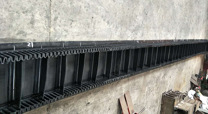 大傾角輸送帶一般和波狀擋邊輸送機(jī)配合使用,其使用角度一般>=30℃,也可和輸送帶式輸送機(jī)配套使用,水平短距離輸送(此時(shí)一般不設(shè)隔板)波形擋邊輸送帶采用成槽度不大于0.03的基帶和擋邊,橫隔板(水平輸送可不要),經(jīng)兩次硫化制成。像500高的擋邊,400高的隔板,在國內(nèi)能做的寥寥無幾,尤其是我們還可以做到6米8的如此寬度。而且八達(dá)選擇的是天然橡膠,使用周期更長,耐磨性比較好。那么到底大傾角輸送帶價(jià)格是多少。