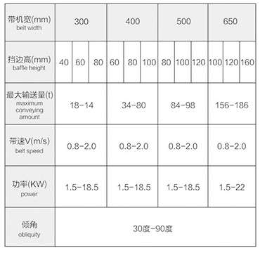 擋邊帶由基帶、擋邊和隔板組成,基帶外觀同普通輸送帶,但橫向剛度更大,擋邊為波浪狀,陋板安其不同的斷面可分T型、C型和TC型。T型適用于傾角B≤40°場合,c型適用于B>40°。且物料溜達性能較好的場合,Tc型適用于傾角B>40°,物料粘性較大,粘度較大的場合。