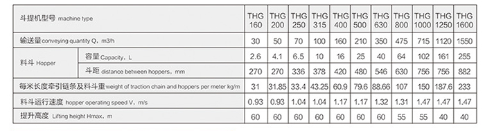 THG型高效斗式提升機技術參數