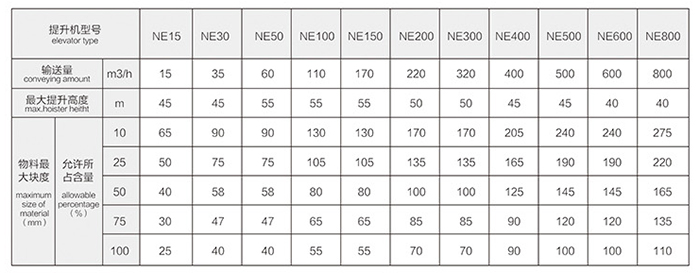 NE斗式提升機技術參數