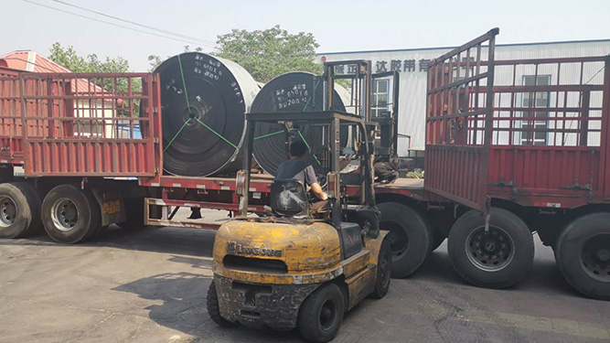 準(zhǔn)備裝車的擋邊輸送帶