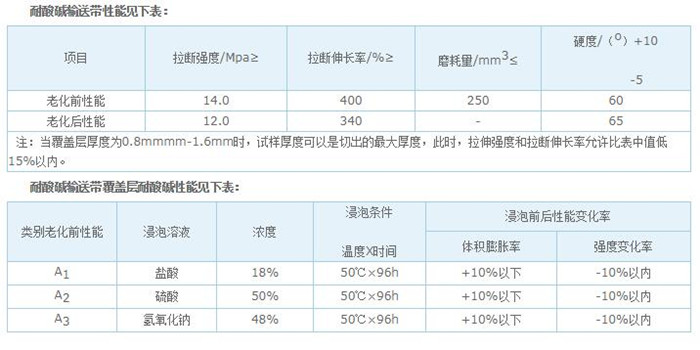 耐酸堿輸送帶產(chǎn)品性能表: